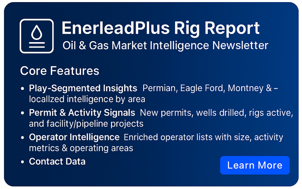 Oilgasleads is your #1 Resource for Oil and Gas Data & Market Intelligence Oilgasleads.com Products Oil & Gas Weekly Market Intelligence Reports Oil & Gas eBooks Oil & Gas News Powered by Enerlead What Helmerich & Payne’s Wells Drilled YTD Reveal Hyperscale AI & Data Centers Sabalo II Operating: A Case Study in Modern Shale Development Discipline Andrews County, Texas on the Spotlight lease Imperial Petroleum’s Q2 2025: A Bigger Fleet, Strong Profitability, and a Market Poised for Upside Cenovus’ 2026 Capital Plan: A Blueprint for Disciplined Growth in a Post-MEG Era Chevron’s Digital Edge: How Technology and Rig Strategy Powered a High-Performance 2025 Offshore Supercycle Begins Under the One Big Beautiful Bill Act INEOS USA Takes Over South Texas Facility Permit From Expand Energy Varas Energy’s Pipeline Permit Transfer Signals a Bigger Shift in South Texas Oil and Gas Rig Locators by Drilling Provider NorAm Drilling Permian Basin Rig Locator Cyclone Drilling Rig Locator AKITA Drilling Rig Locator Unit Corporation Rig Locator Independence Drilling Rig Locator Scandrill, Inc. Cactus Drilling Rig Locator Precision Drilling USA Rig Locator Ensign Energy Services Rig Locator Nabors Industries Rig Locator (US) Patterson-UTI Energy Rig Locator Helmerich & Payne Rig Locator Rig Locator US Customer Feedback