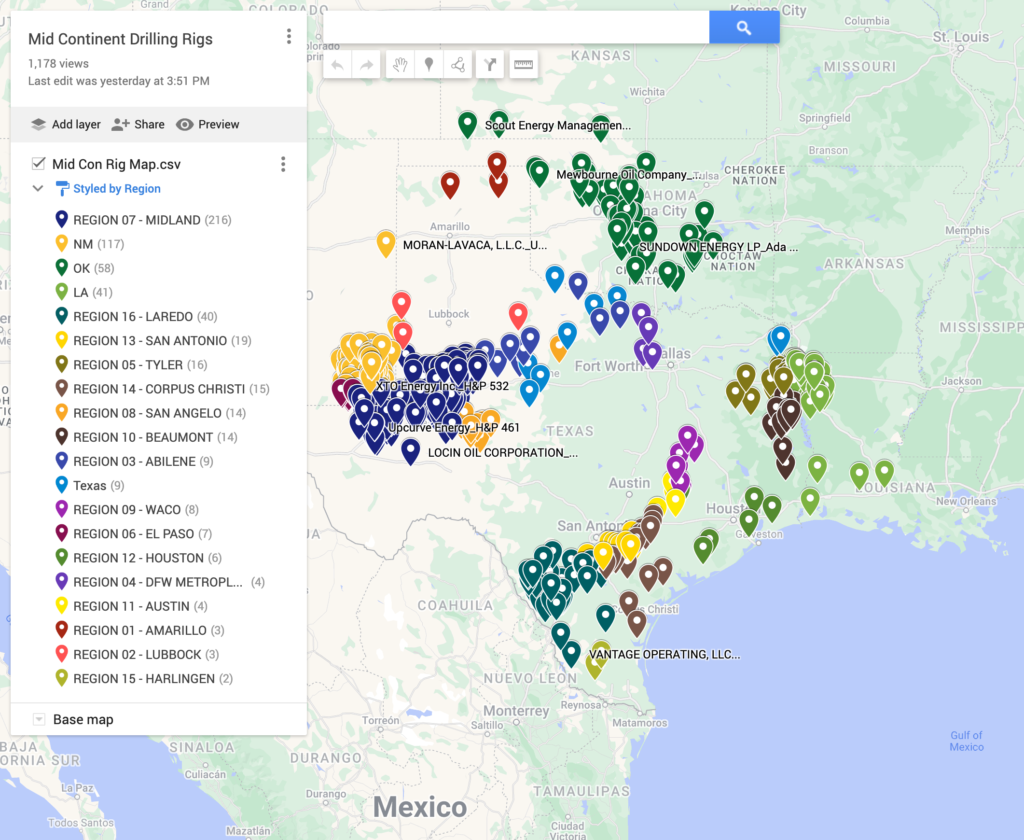 Map of Drilling Rigs in the Mid Continent US (click to view)